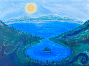 This Kings Beach show with North Tahoe Arts is so meaningful for me, because the opening date is on the anniversary of when I was hit by a drunk driver at Crystal Bay, fourteen years ago. I suffered a brain injury, and it took a long time to recover the level of creative thought needed for me to paint. I am happy to report my creative thought process has completely healed. I’m grateful to everyone at North Tahoe Arts for this show opportunity. Thank you!